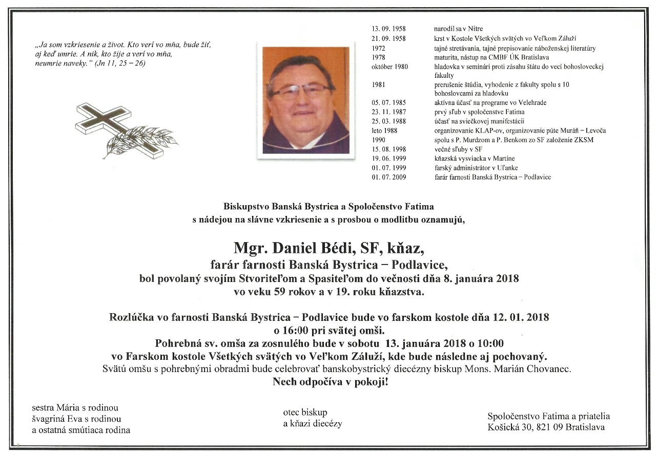 Úmrtie katolíckeho kňaza v Podlaviciach 8.1.2018